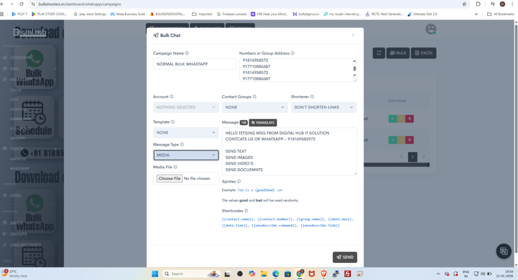 (मान लीजिए आपके पास बहुत अधिक मोबाइल नंबर हैं और आप उन सभी को एक साथ अपनी सेवाओं या प्रचार से संबंधित संदेश भेजना चाहते हैं।)
